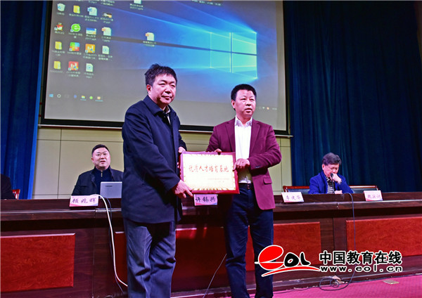 中国教育在线讯 3月27日,无锡市惠山区优质人才培育基地赠牌仪式在德州职业技术学院学术报告厅举行。赠牌仪式由德州职业技术学院院长助理魏滨训主持,副院长李建华致欢迎辞,李建华首先代表德州职业技术学院向无锡市惠山区各位领导、各位企业家的到来表示热烈的欢迎,对无锡市惠山区将学校确定为“优质人才培育基地”表示诚挚的感谢。希望双方本着“诚实守信、共谋发展、合作共赢”的原则,加强沟通,深度融合,把无锡市惠山德州职业技术学院优质人才培育基地建设成全国政校企合作的典范。