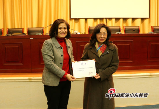 王向红副院长围绕“推进产学研协同创新,聚力高职院校服务区域发展”这一主题从“产学研协同创新高职新要求”、“树立高职密切产学研结合发展新理念”以及“区域高职院校产学研结合发展路径”等三个方面进行了详尽阐述,讲座深入浅出,内容详实,给我校申报山东省优质校工作带来启迪和思考。培训结束后,我校党委委员、组织人事处处长周爱红向王向红副院长颁发了客座教授聘书。