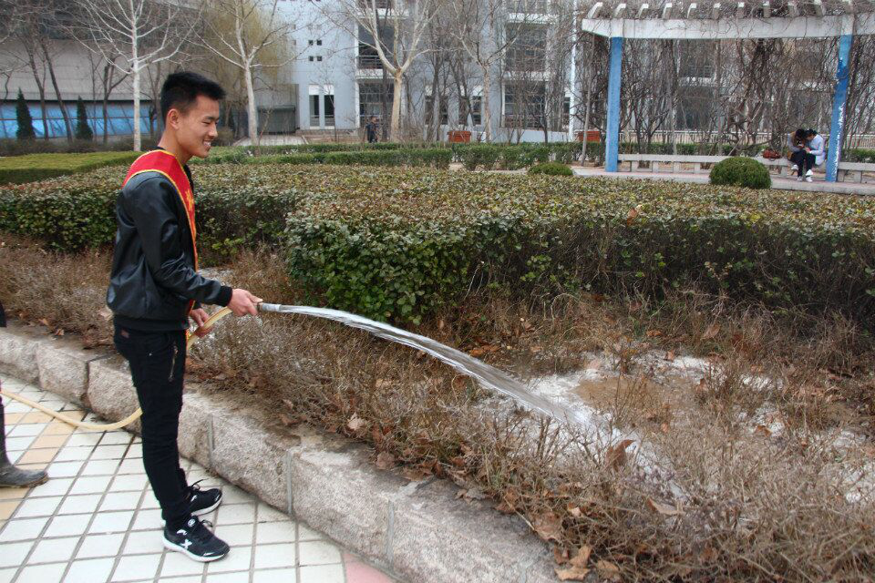 志愿者们为教研室老师打扫卫生,帮助学院环卫人员打扫地面垃圾,帮助花池旁的大爷浇水等。活动结束之后我们互相笑着,那一笑很甜很有意义。从这一宝贵精神财富中汲取营养,从我做起,从身边的小事做起,提高自身素养,学习和实践如何在奉献社会中提高自我、实现自我。
