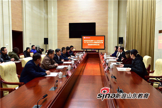 11月22日上午,法国Fresne职业高中M. Bauvineau博维诺校长一行,在青岛卢瓦尔大区办事处负责人苟笑陪同下,来德州职业技术学院交流合作办学事宜。德州职业技术学院院长张同光,副院长陈章侠出席交流会,建筑系负责人、专业老师参加。