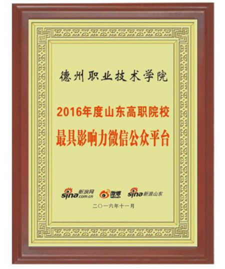 近日,由新浪网、新浪微博、新浪山东联合主办的“2016年度山东新教育媒体官方平台”评选活动落下帷幕,德州职业技术学院在众多高校中脱颖而出,荣获“2016年度山东高校最具影响力微信公众平台”。