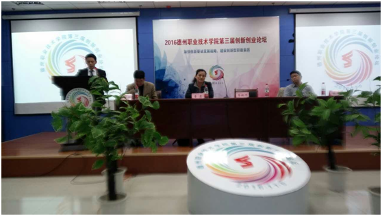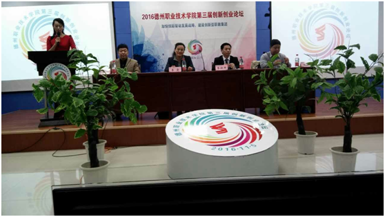 2016年11月5日,德州职业技术学院第三届创新创业论坛在德州职业技术学院成功举办。德州职业技术学院党委委员、副院长李建华出席并邀请中国互联网新闻中心双创发展办公室主任、中国创业创新发展委员会执行主任李潮平,山东省学生就业创业教育咨询中心主任、理学博士、山东省推进高校创新创业教育改革文件主笔人李霞,以及中国创新创业发展委员会基础教育培训管理中心执行主任、创制汇德科技发展有限公司创始人、董事长、德威乐普企业管理顾问有限公司合伙人谢强担任嘉宾。