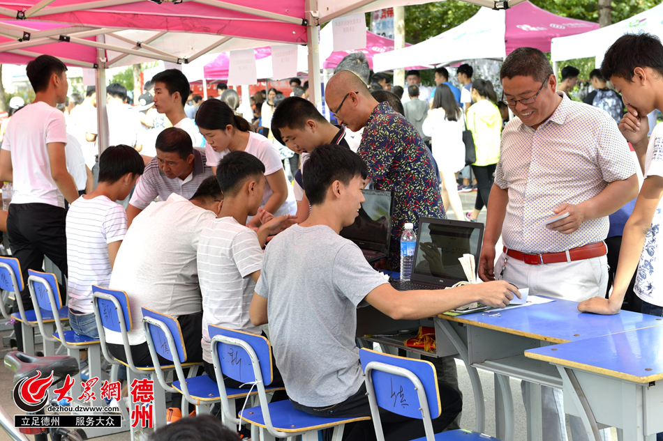 大众网德州8月29日讯(记者 翟岩 见习记者 董天力)近日,德州市各大高校陆续迎来新生,德州各路商家竞相吆喝,围绕着通信、金融、日用品,每所高校迎新都催生出一个微型经济圈。8月29日上午,记者来到德州职业技术学院,当天是该校新生报到首日,新生及家长陆续前来,最引人注目的莫过于各路商家,校园内外一派热闹景象。