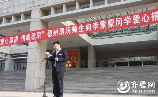 在得知李蒙蒙的情况后,德州职业技术学院学生处(团委)、学生会立即向全校师生发出倡议,全校师生积极响应,纷纷伸出援助之手。28日下午,募捐现金63691.2元,下一步,爱心捐款将被转交到李蒙蒙家长手中。