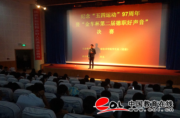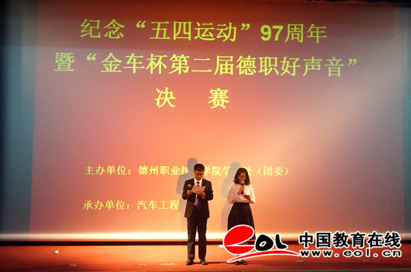 二、举行纪念“五四运动”97周年暨德职好声音决赛。学生们用歌声传递他们的爱国热情,传播正能量,继承和发扬“五四运动”的光荣传统,促进校园精神文明建设。