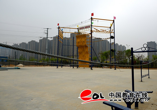 大学生素质拓展基地占地2000㎡,基地规划建设高空组合项目16个,包含攀岩、单杠、断桥、荡木桥、绳网、天梯、独木桥等项目;地面拓展项目9个,包含四米墙、背摔、地面荡木桥、同心同行等项目;教具项目6个包含模拟沼泽、孤岛求生、击鼓颠球、雷阵图、交通阻塞、能量传输等项目;抗晕器械3组飞行转轮、旋梯、浪木等项目;心理极限项目3个软桥、倒爬杆、滑索等项目。