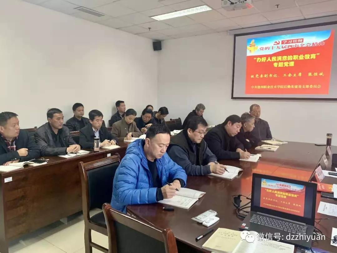 张恒斌结合主题教育开展以来的学习、调研及思考情况,结合工作实际,作了题为《学习贯彻十九届四中全会精神,办好人民满意的职业教育》的党课,深刻阐释了十九届四中全会的重大历史意义。他指出,党的十九届四中全会是中华民族伟大复兴关键时期召开的一次重要会议。要把学习党的十九届四中全会精神作为当前和今后一段时期重要的政治任务,深刻认识党的十九届四中全会的重要意义,贯彻落实好全会精神,坚持和完善中国特色社会主义现代大学制度,推进学校治理水平和治理能力现代化。他强调,全体党员干部要认真学习党的十九届四中全会精神,坚持读原著、学原文、悟原理。使习近平新时代中国特色社会主义思想和四中全会精神入脑入心,增强“四个意识”、坚定“四个自信”、做到“两个维护”,坚决在政治立场、政治方向、政治原则、政治道路上同以习近平同志为核心的党中央保持高度一致。要提高政治站位,增强政治定力,加强党性锻炼对党忠诚、为党分忧、为党尽责,经受“四大考验”,克服“四种危险”,不断增强自我净化、自我完善、自我革新、自我提高的能力,做党的忠诚卫士。要认真履职担当,大力弘扬理论联系实际的学风,坚持学以致用,密切联系学校党的建设、十三五发展规划、创建山东省优质高职院校等工作,科学谋划当前和明年工作。