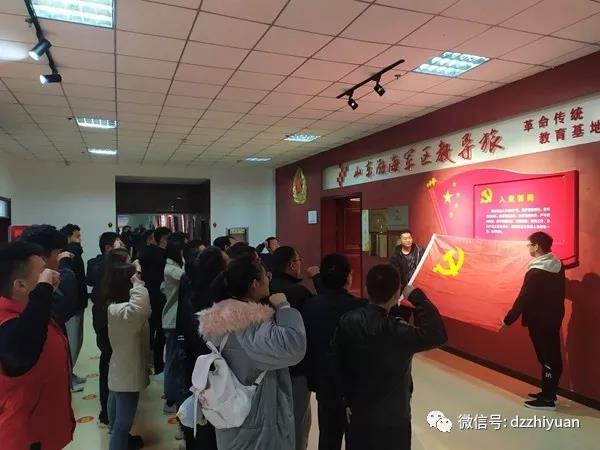 步入山东渤海军区教导旅革命传统教育基地后,全体党员首先在鲜红的党旗下重温入党誓词,牢记入党初心。接着,在讲解员的指引下,大家依次参观了“渤海建军 守卫家园”“战旗西指 铁血万里”“铸剑为犁 屯垦戍边”“英载史册 精神不朽”四个部分。党员们通过观看音像资料片、革命历史图片和VR体验等形式,了解革命先烈的英雄事迹,深刻感悟一代代教导旅战士为实现“初心”矢志不渝、砥砺前行的英雄壮举。