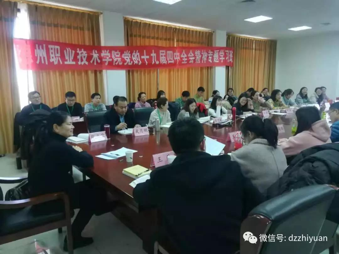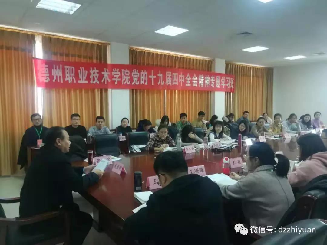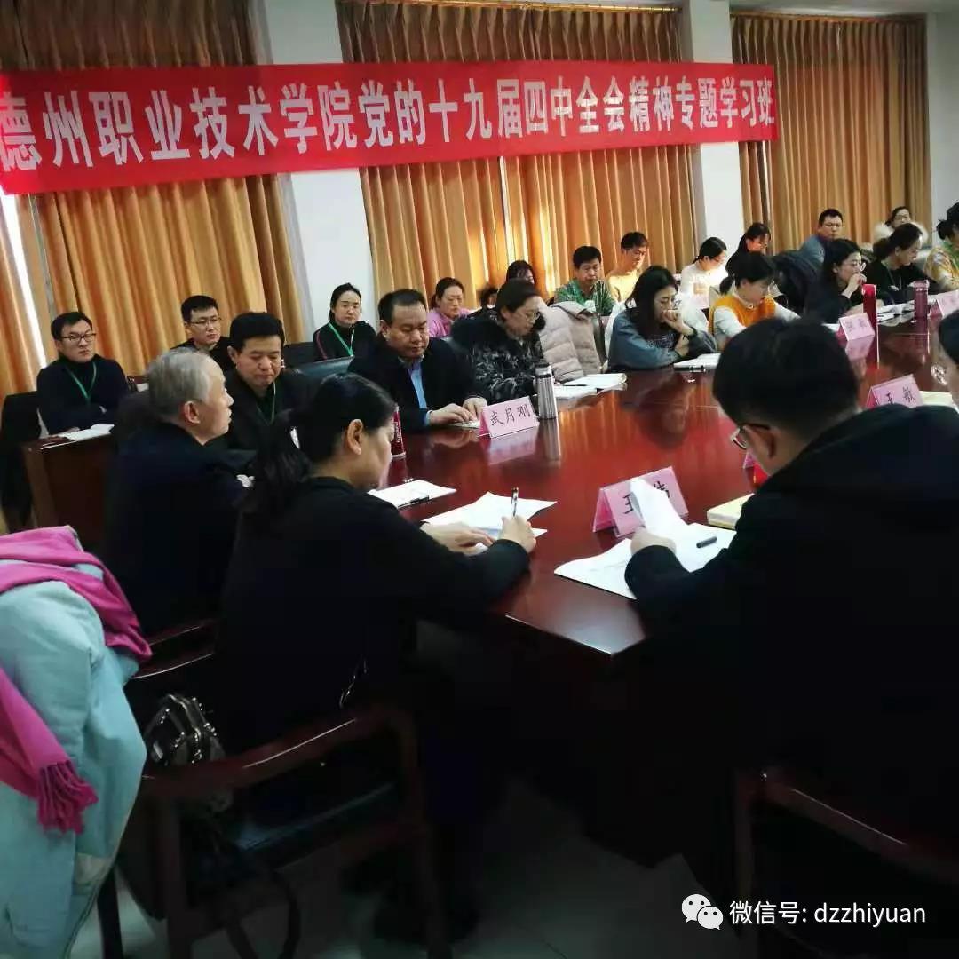 为深入学习贯彻党的十九届四中全会精神,根据中央、省委和市委《关于做好党的十九届四中全会精神学习宣传工作的通知》要求,12月28日一31日,德州职业技术学院在市委党校组织举办了十九届四中全会精神专题学习班。