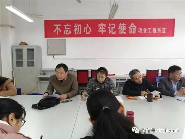 根据学校“不忘初心、牢记使命”主题教育学习研讨安排,近日,粮食工程系党总支组织全体党员教师召开“理想信念、宗旨意识”集中研讨会,系党总支书记王辉主持。