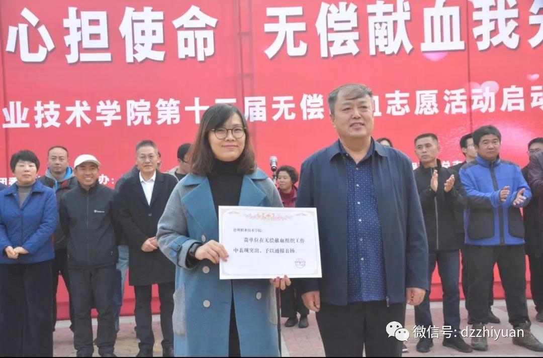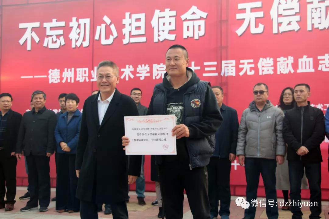 11月8日上午,我校“不忘初心担使命,无偿献血我先行”暨第十三届无偿献血志愿活动举行。校党委委员、办公室主任郭士武,机关党总支书记张维杰,德州市中心血站站长助理张晓云,各系党总支书记、学生科科长、副科长、献血教职工及1000余名学生志愿者参加活动。学生处处长刘宏杰主持启动仪式。