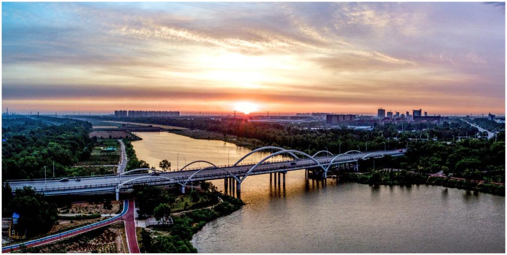 朝霞映在大学路桥