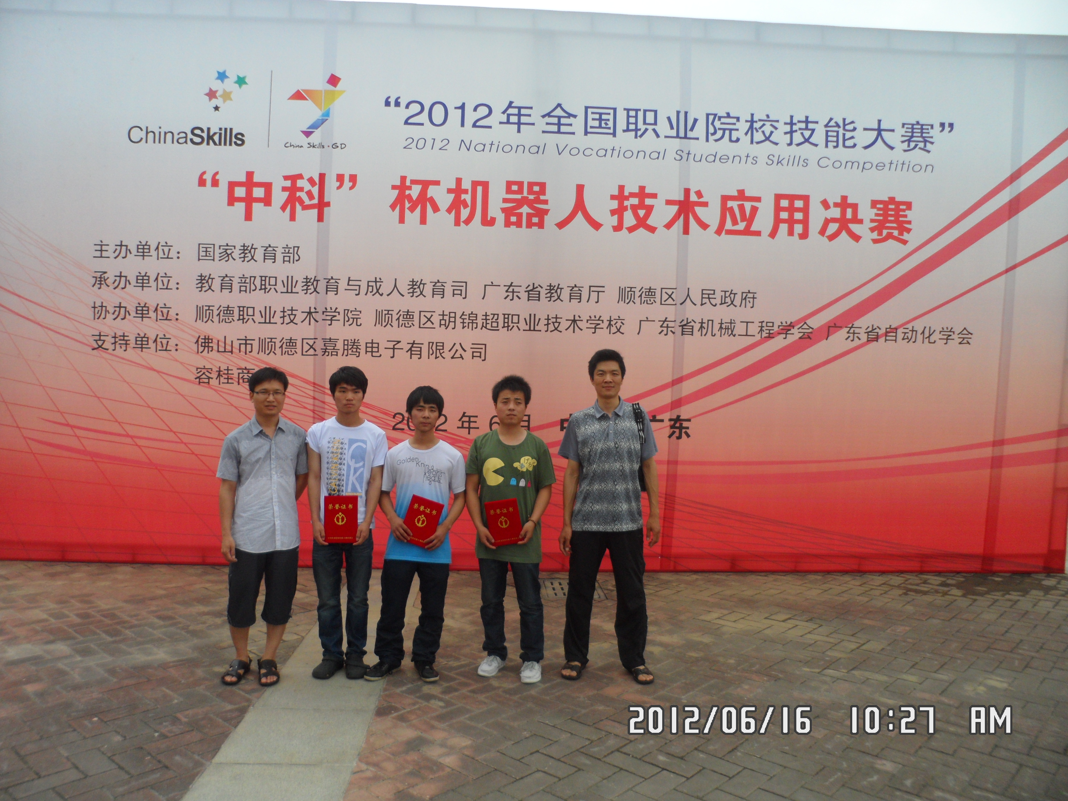 6月16日,2012年全国职业院校技能大赛“中科”杯机器人技术应用项目决赛在广东顺德职业技术学院落下帷幕。由我院电子与新能源技术工程系裴勇生、刘瑞龙两位老师指导的应用电子专业学生张晨、李赞、常满意组成的代表队获得全国三等奖。