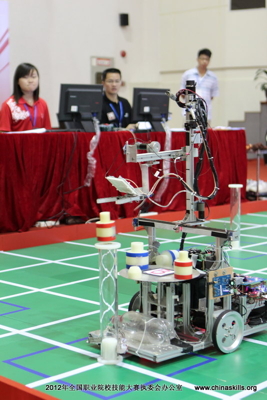 2012年全国职业院校技能大赛是国家教育部联合工业和信息化部等23个部委组织共同举办的一项全国性职业教育学生竞赛活动,是国内专业覆盖面最广、参赛选手最多、社会影响最大的国家级职业院校技能赛事。机器人技术是集电子技术、通信技术、计算机技术、控制技术和机械制造于一身的综合性学科,该竞赛项目任务难度大,竞技水平高。共有来自全国24个省、自治区、直辖市和计划单列市的46所学校、51支队伍、153名选手同场竞技、切磋技艺。