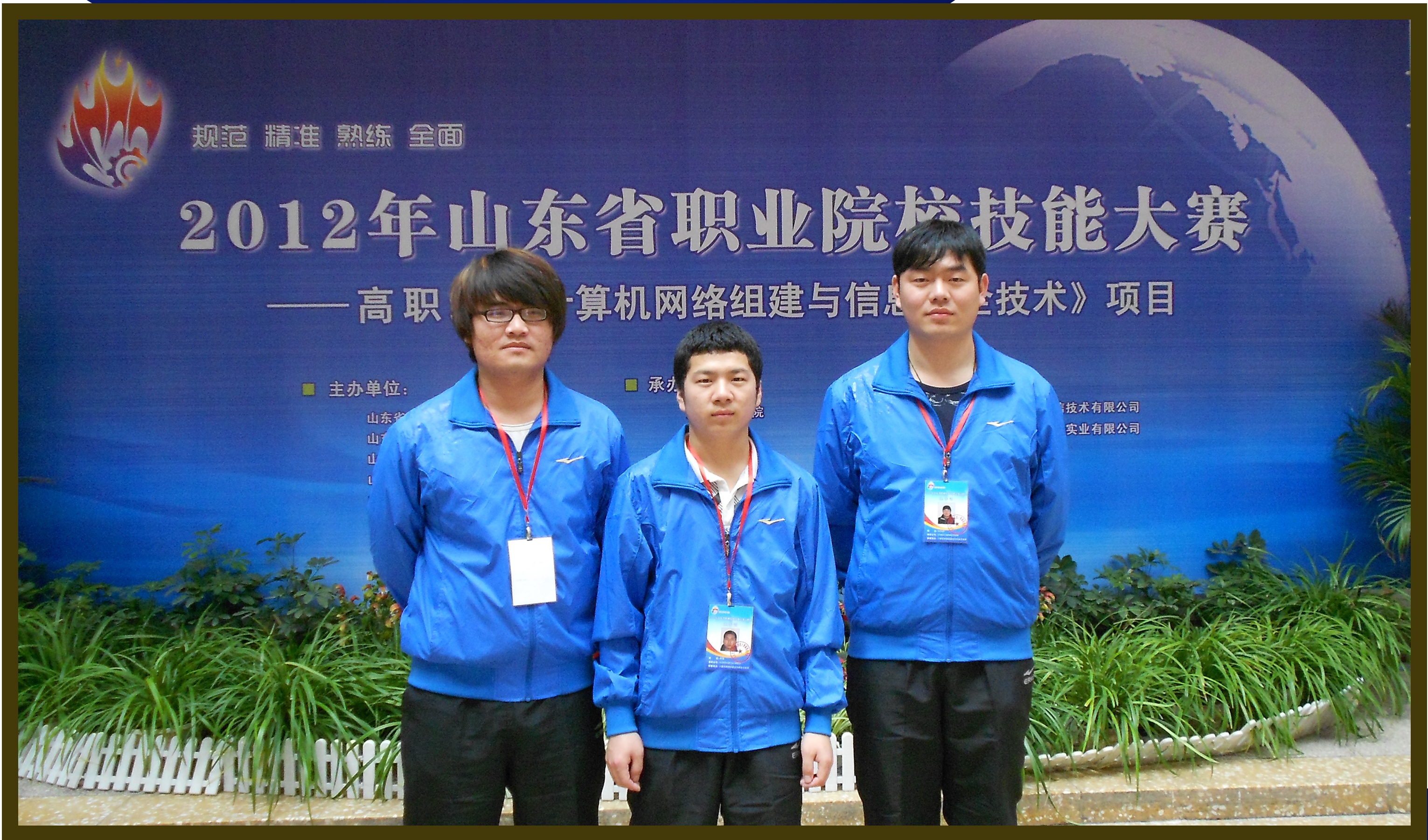 2012年4月18日,2012年山东省职业院校技能大赛高职组计算机网络组建与信息安全技术项目竞赛在潍坊职业学院开赛。来自全省42所高职院校的126名学生参加本次竞赛。竞赛采用团队方式进行,每所院校派出三名选手组成参赛团队,按顺序参加18日至19日为期两天的4场竞赛。我院计算机信息技术工程系教师李春辉、赵锴指导的该系网络系统管理专业学生刘大庆、林森、彭得民组成代表队,代表学院参赛,荣获大赛三等奖。